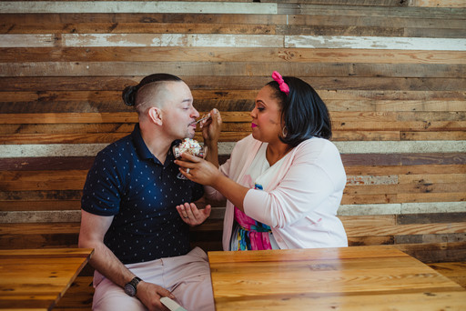 At the beginning of August, my clients-turned-friends told me that after 8 years of marriage, they were finally FINALLY pregnant and couldn’t wait to share the amazing news with their friends and family! We had this amazing session at an ice cream place called The Parlour in Durham, North Carolina, and took the cutest shots, both indoors and outdoors. They came out amazing.