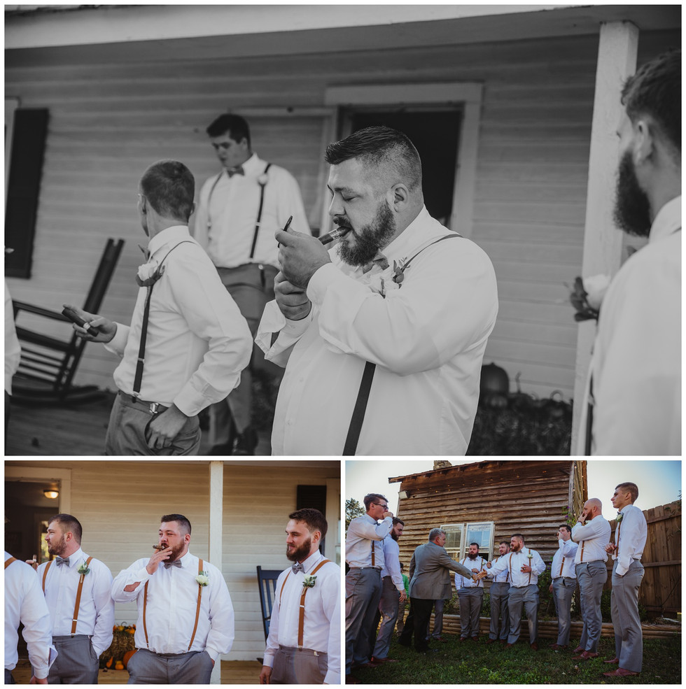 The bride’s dress was an elegant mermaid gown from David’s Bridal and her hair was professionally styled by family, Jessica Ellis! Kayla could not have looked more lovely. She celebrated with her bridesmaids in the bridal suite with champagne and a group prayer after getting ready. Brian and his groomsmen opted for cigars to commemorate the day.